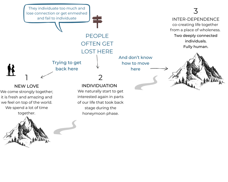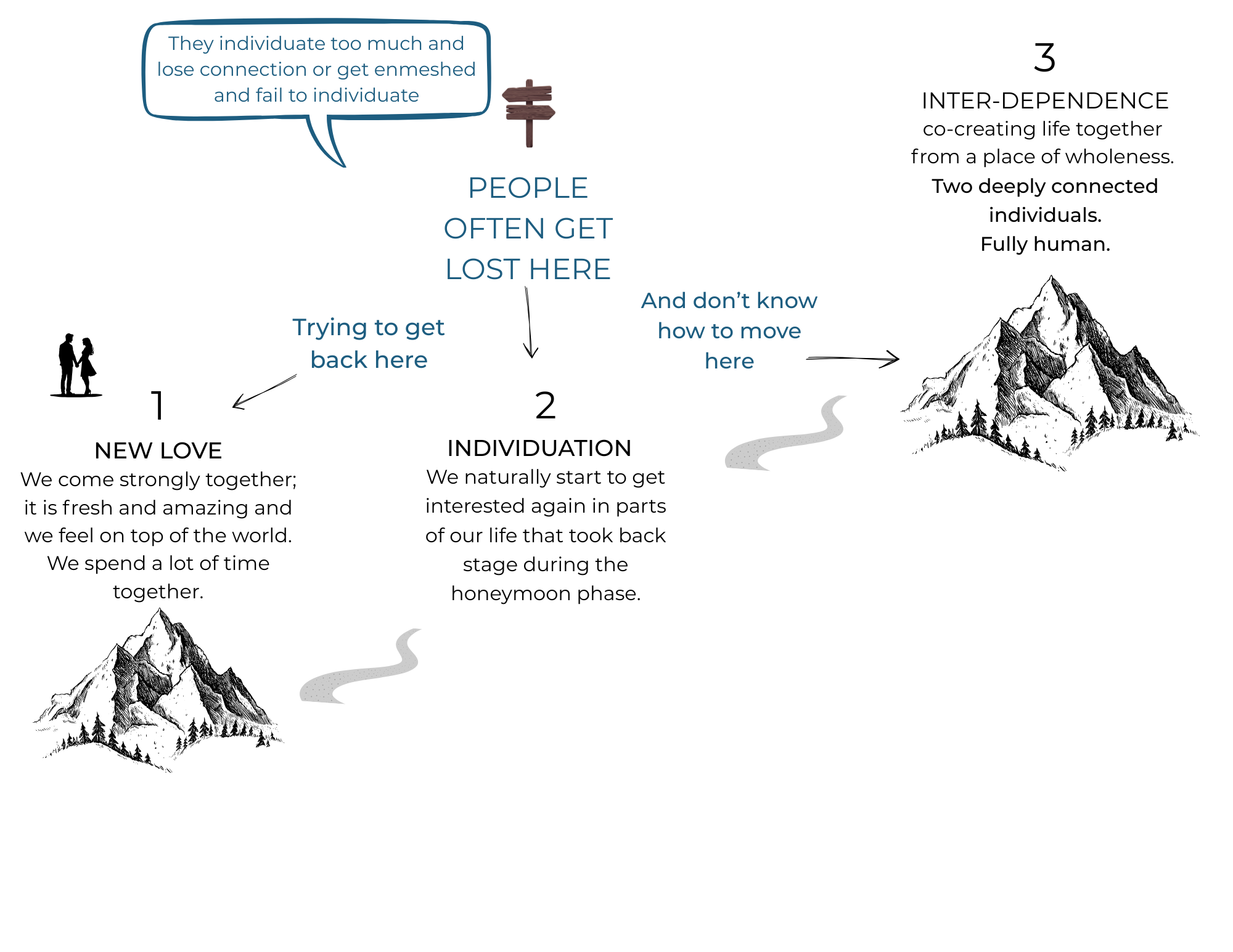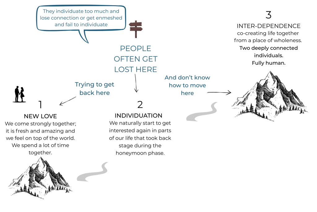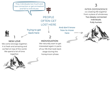 They either strive to get back to the high of falling in love or they individuate too much and lose connection - whether they remain with the same partner or not